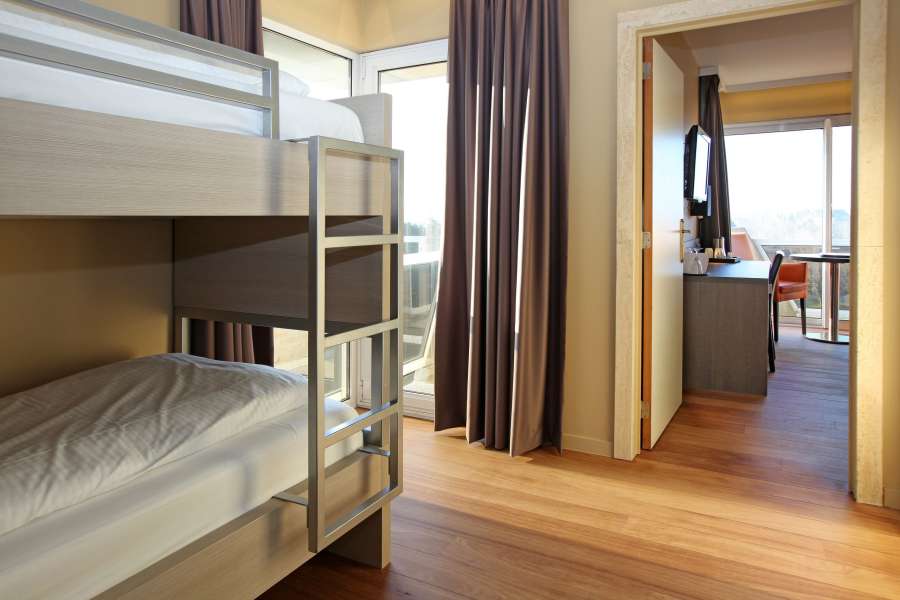 De standaard familiekamer heeft een aparte kleinere slaapkamer met stapelbed voor 2 kinderen.
